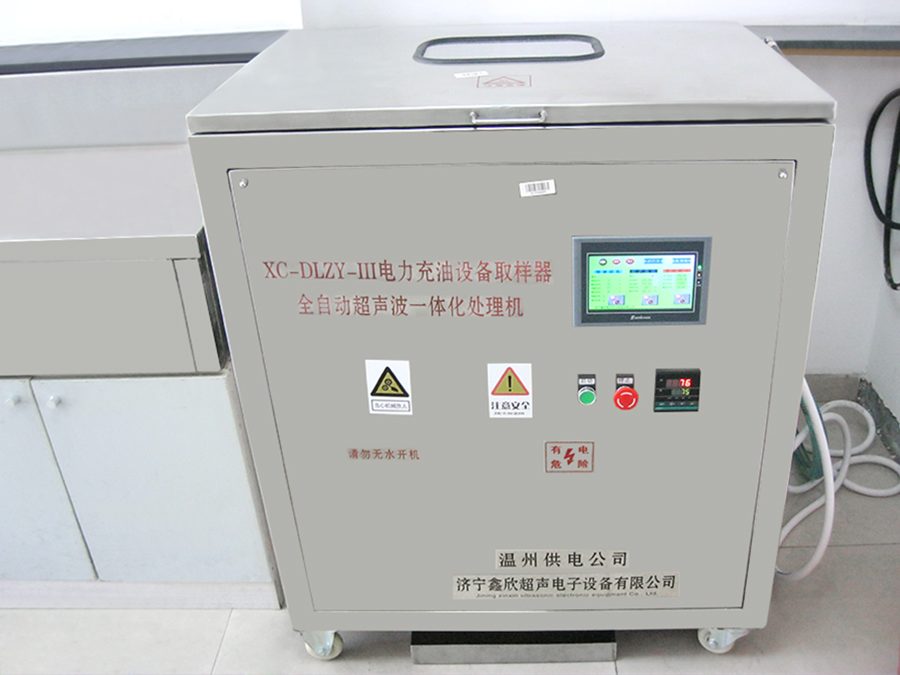 本機器是我公司研制的一種全自動超聲波處理設備。該機在一個處理槽內實現了超聲波清洗、超聲波漂洗、高壓噴淋和烘干過程的全自動化。將工件裝入夾具后放入處理槽內,經以上工序處理后取出即為潔凈干燥的工件,可以直接用于生產或進入下一道工序。本機主要由機架及管路、降音系統、工裝夾具、超聲波清洗系統、加熱和自動溫度控制、鼓泡噴淋系統、自動排污系統、自動進排水、干燥系統、PLC及觸摸屏控制系統等組成。適用于精 密零部件、醫療器械、注射器、取樣器、玻璃瓶、試管、鏡片等清洗烘干。