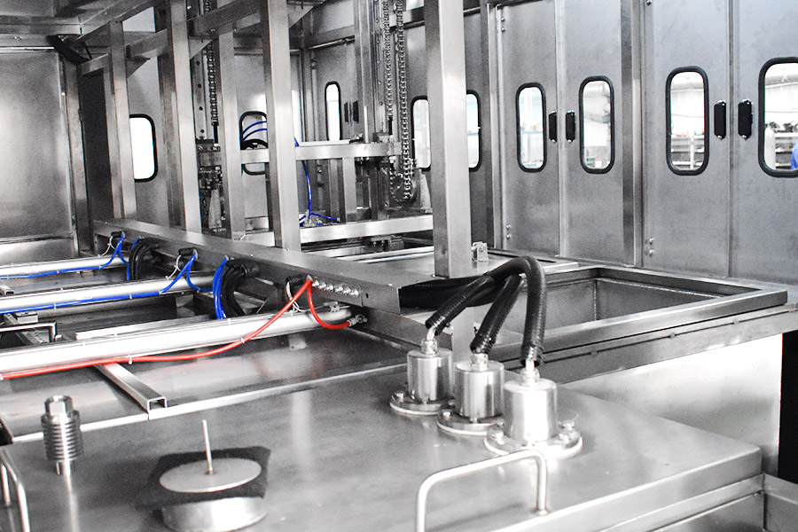 該設(shè)備有自動(dòng)上下料及轉(zhuǎn)角系統(tǒng)、超聲波清洗系統(tǒng),自動(dòng)拋動(dòng)、自動(dòng)溢流和油污分離裝置,噴淋系統(tǒng)、自動(dòng)高壓切水系統(tǒng)、自動(dòng)烘干系統(tǒng)。機(jī)械手自動(dòng)輸送系統(tǒng)采用高精度直線導(dǎo)軌配合高精度位置檢測(cè)傳感器,機(jī)械手可以準(zhǔn)確的實(shí)現(xiàn)工件的抓取和放置。自動(dòng)進(jìn)排液和自動(dòng)加溫系統(tǒng)完全實(shí)現(xiàn)了無(wú)人干預(yù),自動(dòng)運(yùn)行,很大程度上降低了工人的勞動(dòng)強(qiáng)度。先進(jìn)的霧氣處理系統(tǒng)可以將清洗時(shí)產(chǎn)生的霧氣冷凝回流,空氣經(jīng)過(guò)濾和活性炭吸附后排出。