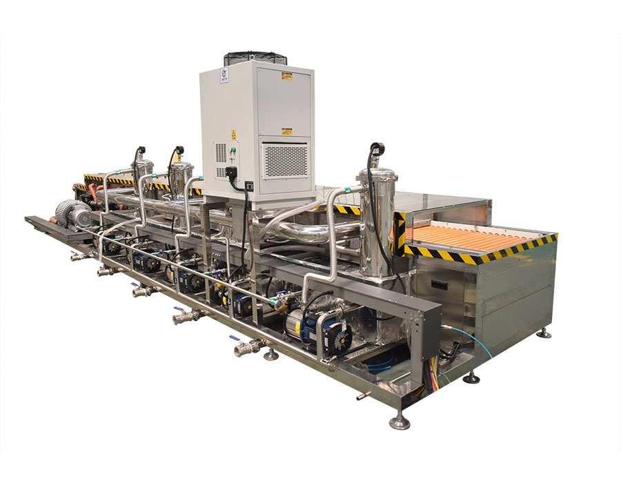 導讀:光學玻璃通過式超聲波噴淋清洗烘干線